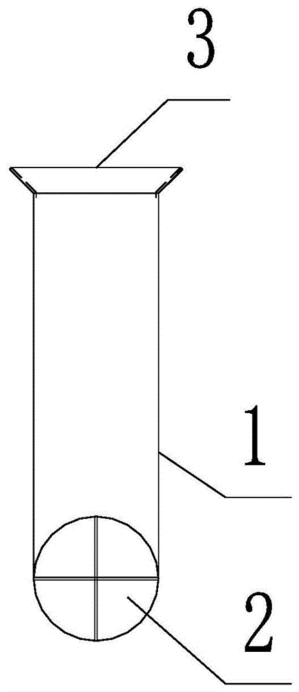 沉淀池套筒阀通过连接的管道和沉淀池组成连通器,利用静压差原理,通过调节套筒阀的出水高度,排泥并调节排泥量。套筒阀的本体1上部通常有一个一字横梁、底部十字支撑2,一字横梁的顶部还设置有伞帽3,如图1所示。伞帽和十字支撑的存在容易造成絮状物的缠绕导致堵塞,这样的结构设计容易造成套筒阀出水量减小,使污泥回流量、回流比降低。本实用新型正是基于此,提出了一种新型沉淀池套筒阀,旨在克服传统套筒阀的上述缺陷,提高污泥回流量。