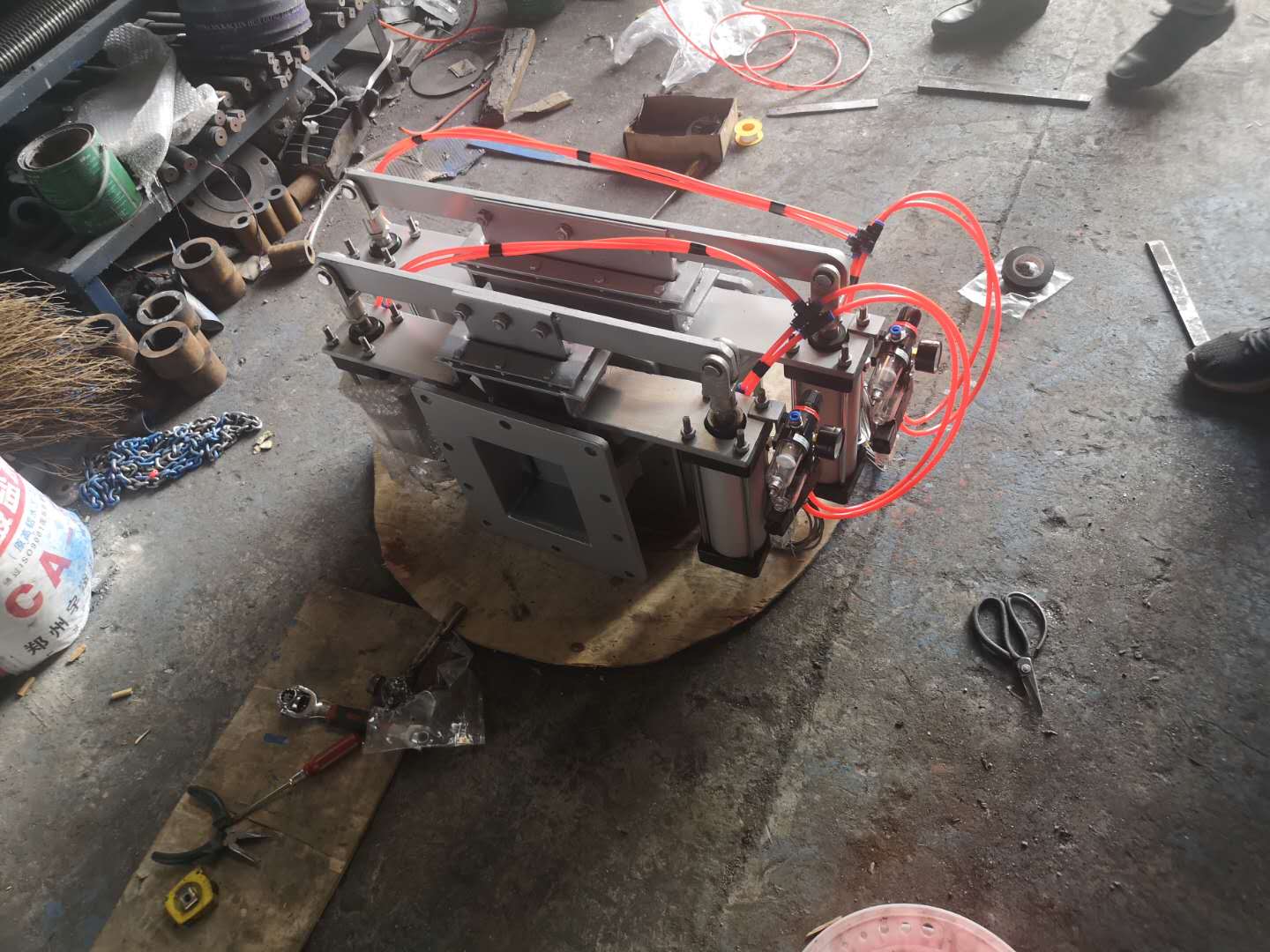 双气动插板阀主要由框架、闸板、丝杆、螺母等零件构成,用手转动手轮使丝杆带动闸板沿水平方向往复运动,使闸板顺利开关。具有结构简单、操作灵活、重量轻、无卡阻、切断快,特别适用于各类无粘度的固体、粉料及小颗粒料,晶粒料的输送及流量调节, 操作方便, 能随时调节开度。通常与卸料器配套使用,直径与卸料器进料口配套,有方形和圆形两种。插板阀的启闭件是闸板,闸板的运动方向与流体方向相垂直。产品广泛应用于冶金、建材、煤炭、矿山、玻璃、轻工、造纸等行业通风除尘、风力输送及排风系统管路上的调节和固体粉料输送的调节和切断.